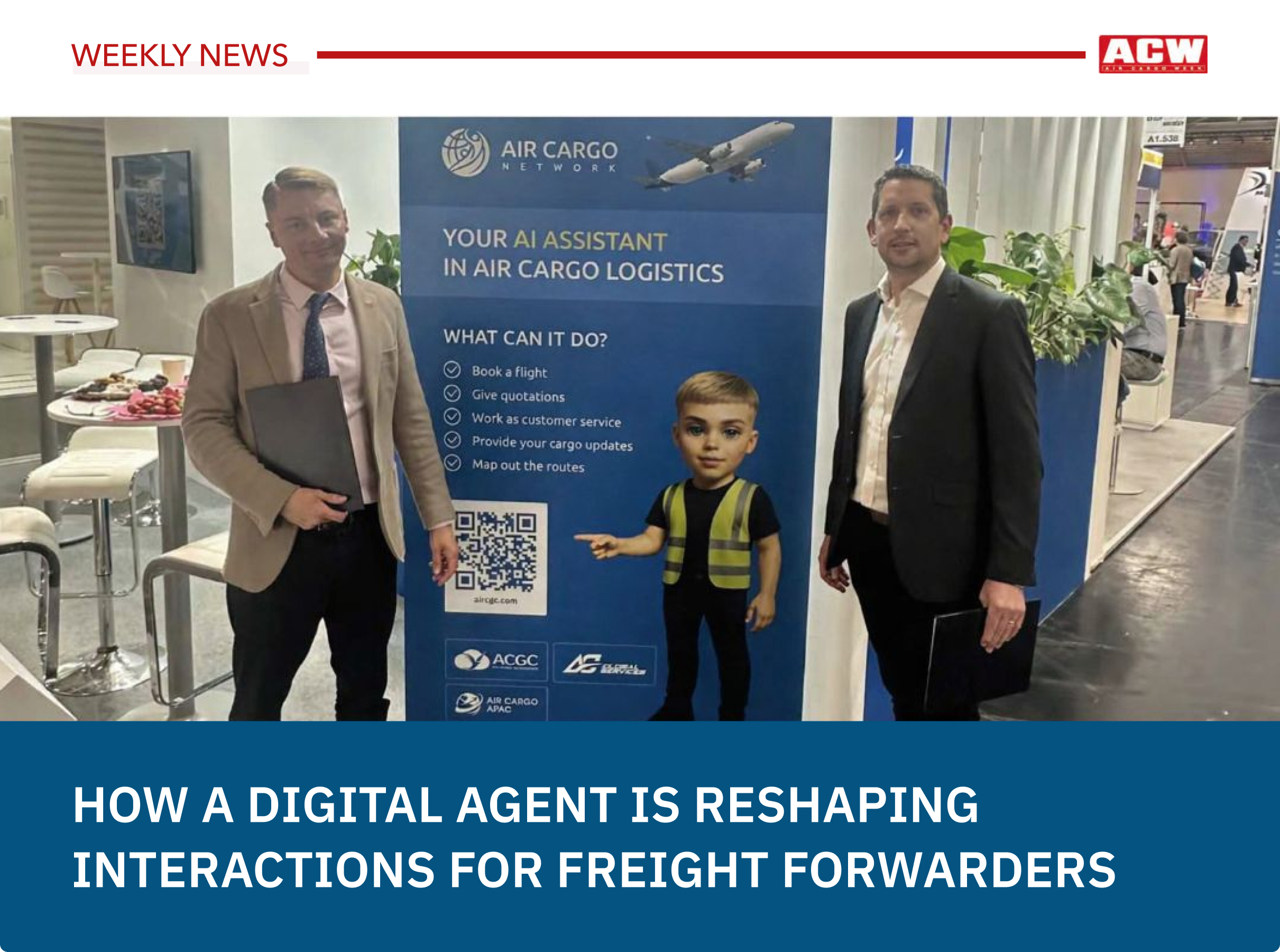 Air Cargo Week has published a feature about the AI-powered digital assistant developed by Air Cargo Green Capabilities (ACGC), highlighting its role in supporting freight forwarders in daily air-cargo operations.