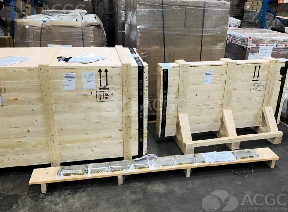 The shipment consisted of two pieces carefully packed to ensure product integrity during international transit.
